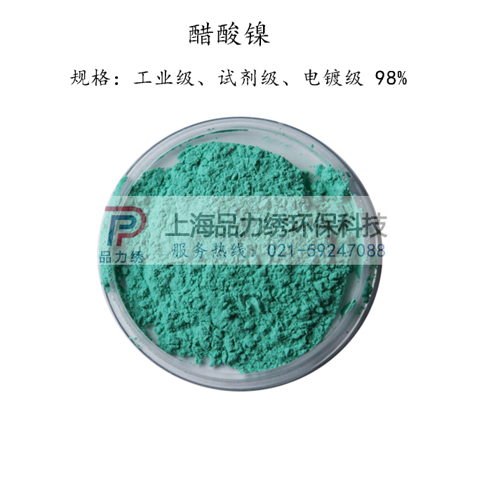 英文名稱:Nickel acetate 分子式:Ni(CH3COO)2·4H2O 性狀:綠色結(jié)晶或綠色單斜晶體粉末,微有醋酸味,溶于水或醇。 用途:用作織物媒染劑,也用于電鍍。
